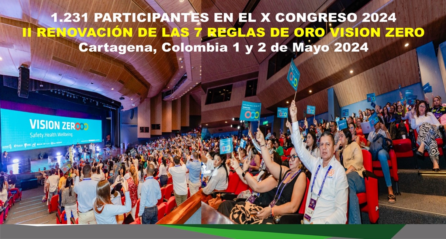 This year we had the X Congreso Internacional de Innovación en Seguridad y Salud en el Trabajo, in Cartagena Colombia. In this event (this is the 10th version) we have a dedicated space where we renew the / 7 Golden Rules and wave the flag and also recognize companies in Colombia that have embraced and implemented e Vision Zero global strategy.